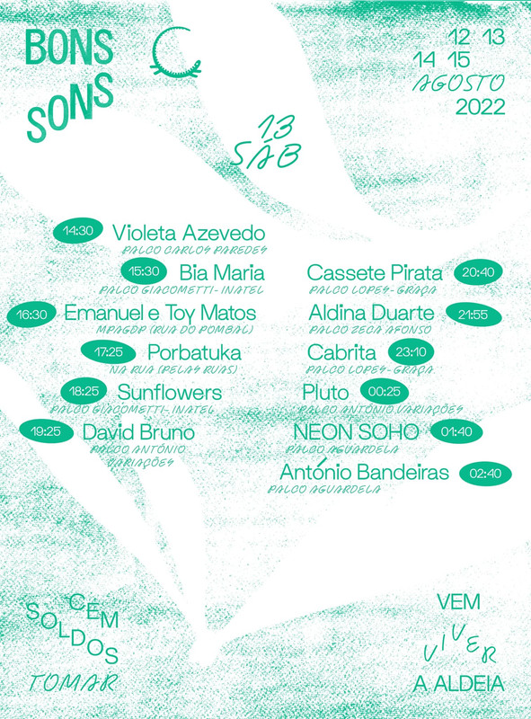 | Horários dos concertos do Festival Bons Sons 2022 | |||